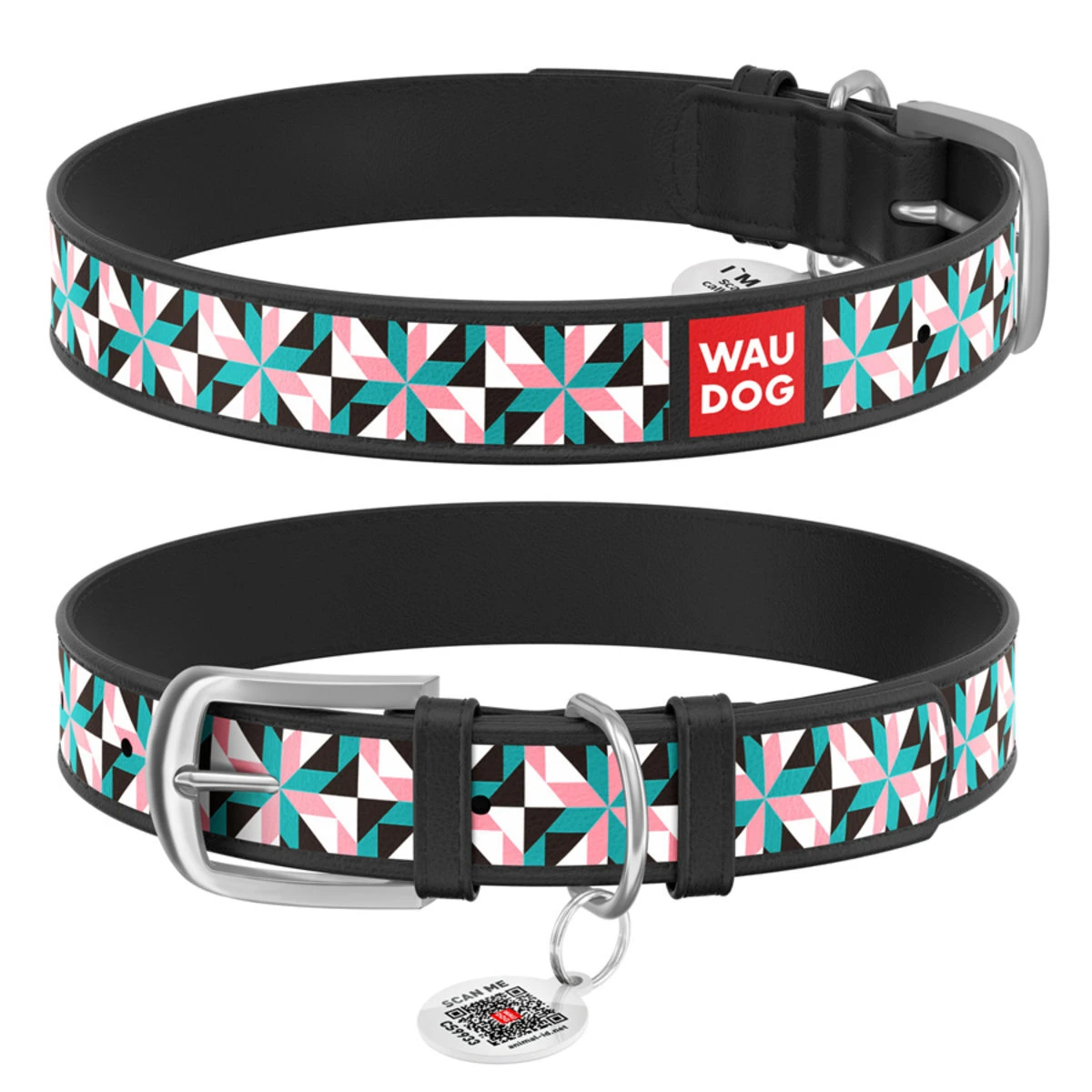 Нашийник WAUDOG Design з малюнком "Сніжні квіти", преміум шкіра, металевий пряжка (ширина 25 мм, довжина 38-49 см), чорний