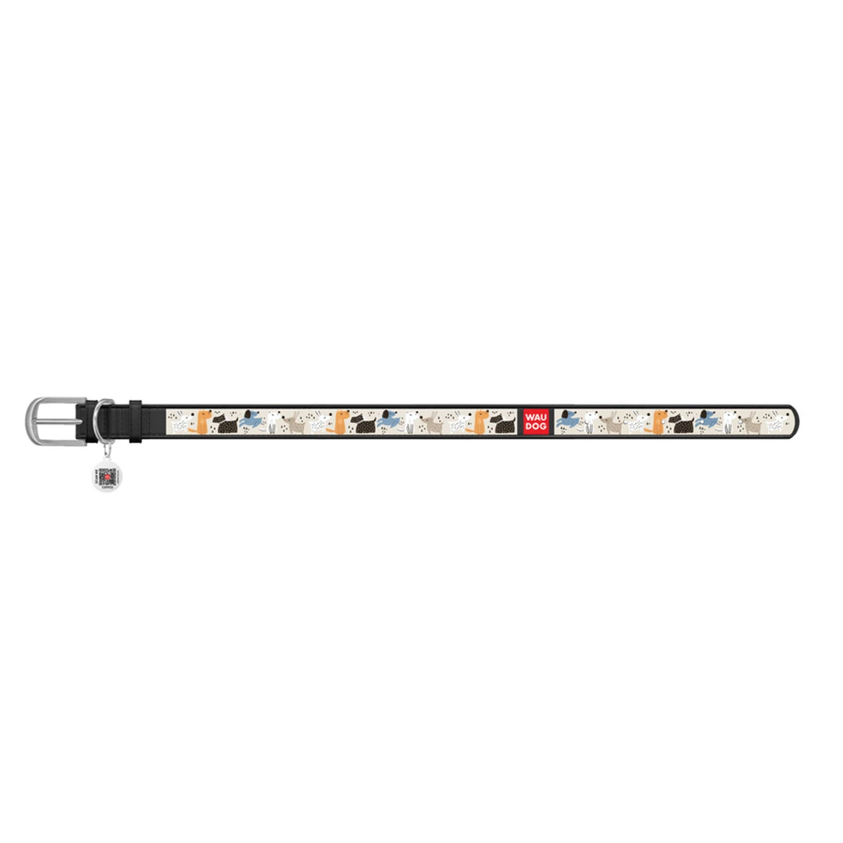 Нашийник WAUDOG Design з малюнком "Собачки на прогулянці", преміум шкіра, металевий пряжка (ширина 25 мм, довжина 38-49 см), чорний