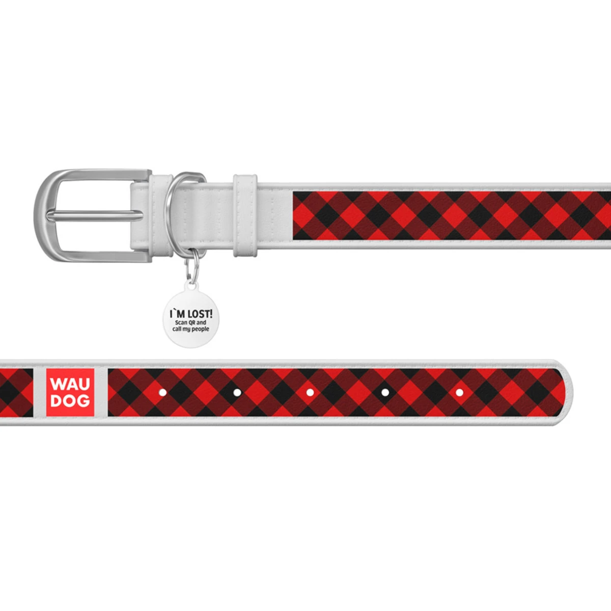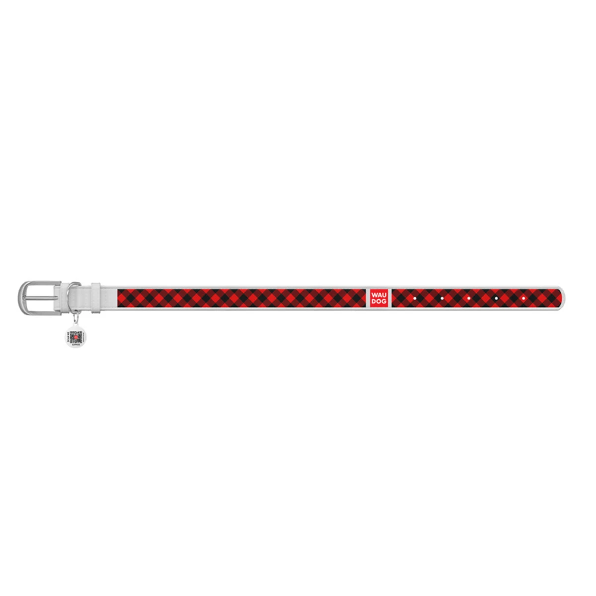 Нашийник WAUDOG Design з малюнком "Шотландка червона", преміум шкіра, металевий затискач (ширина 15 мм, довжина 27-36 см), білий