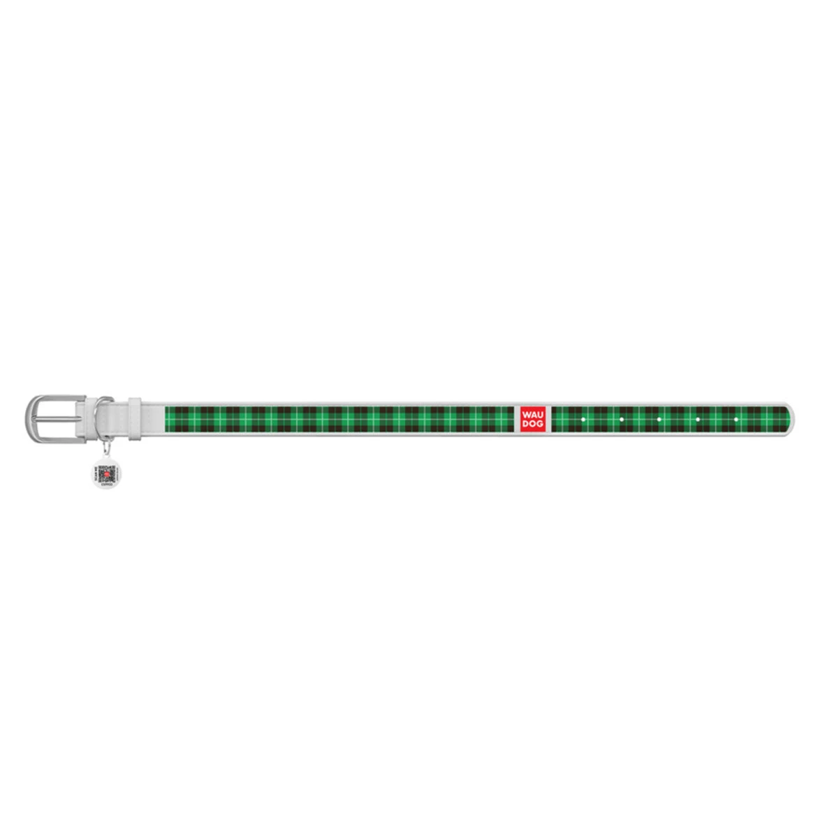 Нашийник WAUDOG Design з малюнком "Шотландка зелена", преміум шкіра, металевий затискач (ширина 15 мм, довжина 27-36 см), білий
