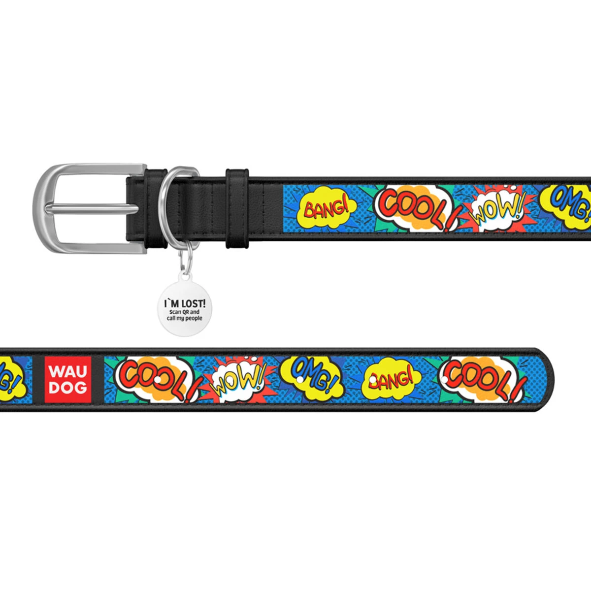 Нашийник WAUDOG Design з малюнком "ВАУ", преміум шкіра, металевий пряжка (ширина 12 мм, довжина 19-25 см), чорний