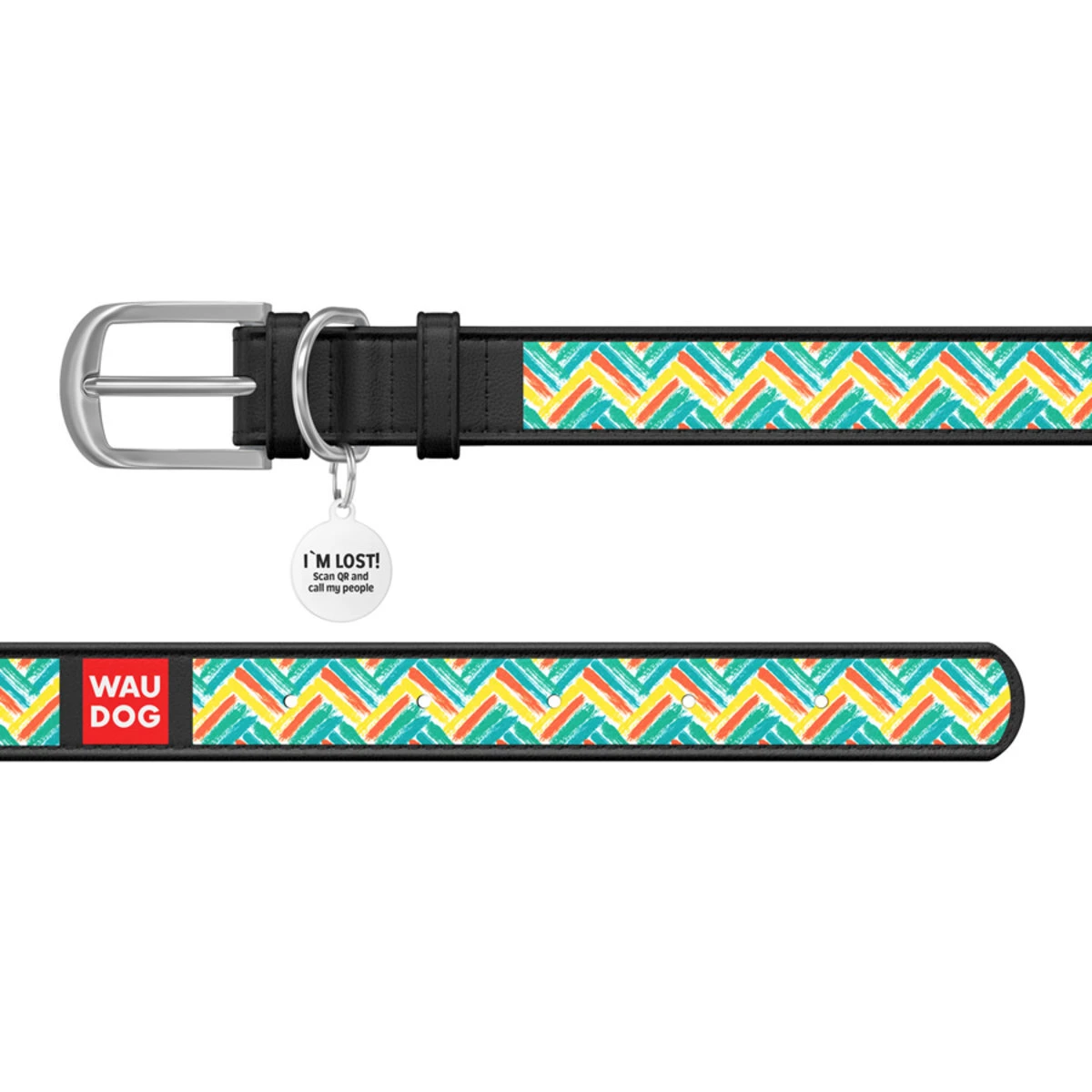 Нашийник WAUDOG Design з малюнком "Зигзаг", преміум шкіра, металевий пряжка (ширина 20 мм, довжина 30-39 см), чорний