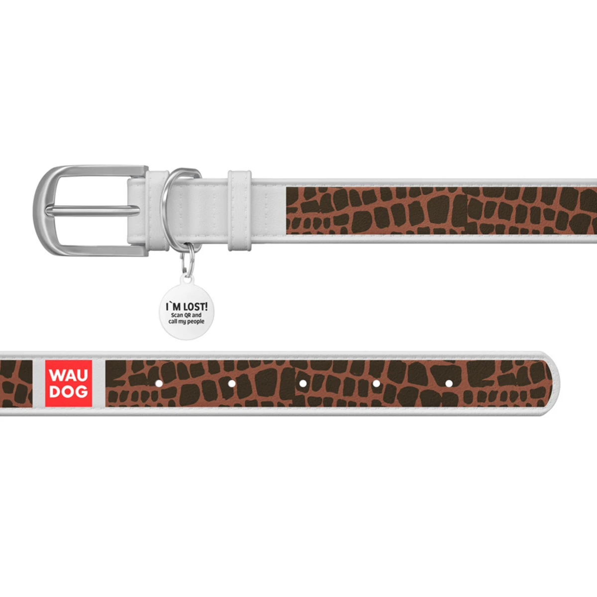 Нашийник WAUDOG Design з малюнком "Жираф", преміум шкіра, металевий пряжка (ширина 12 мм, довжина 21-29 см), білий