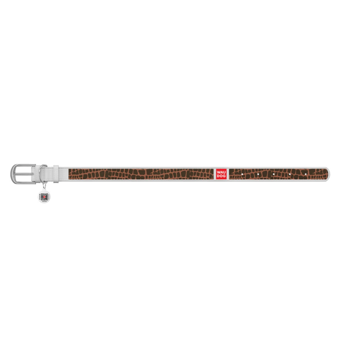 Нашийник WAUDOG Design з малюнком "Жираф", преміум шкіра, металевий пряжка (ширина 25 мм, довжина 38-49 см), білий