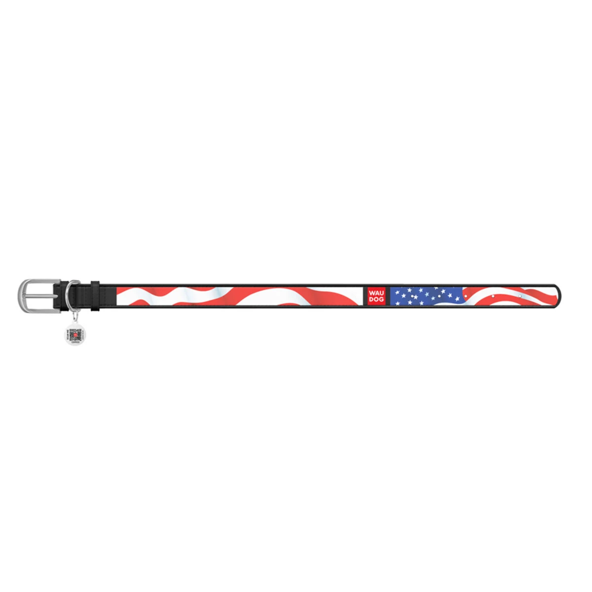 Нашийник WAUDOG Design з малюнком "Зірки та смуги", преміум шкіра, металевий пряжка (ширина 20 мм, довжина 30-39 см), чорний