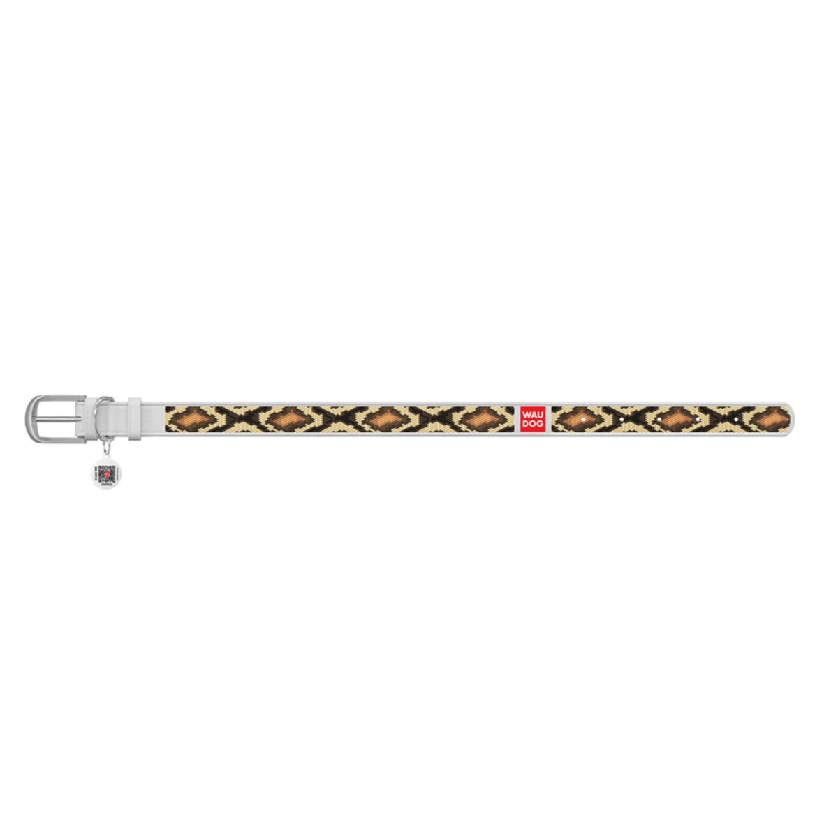 Нашийник WAUDOG Design з малюнком "Змія", преміум шкіра, металевий пряжка (ширина 12 мм, довжина 21-29 см), білий