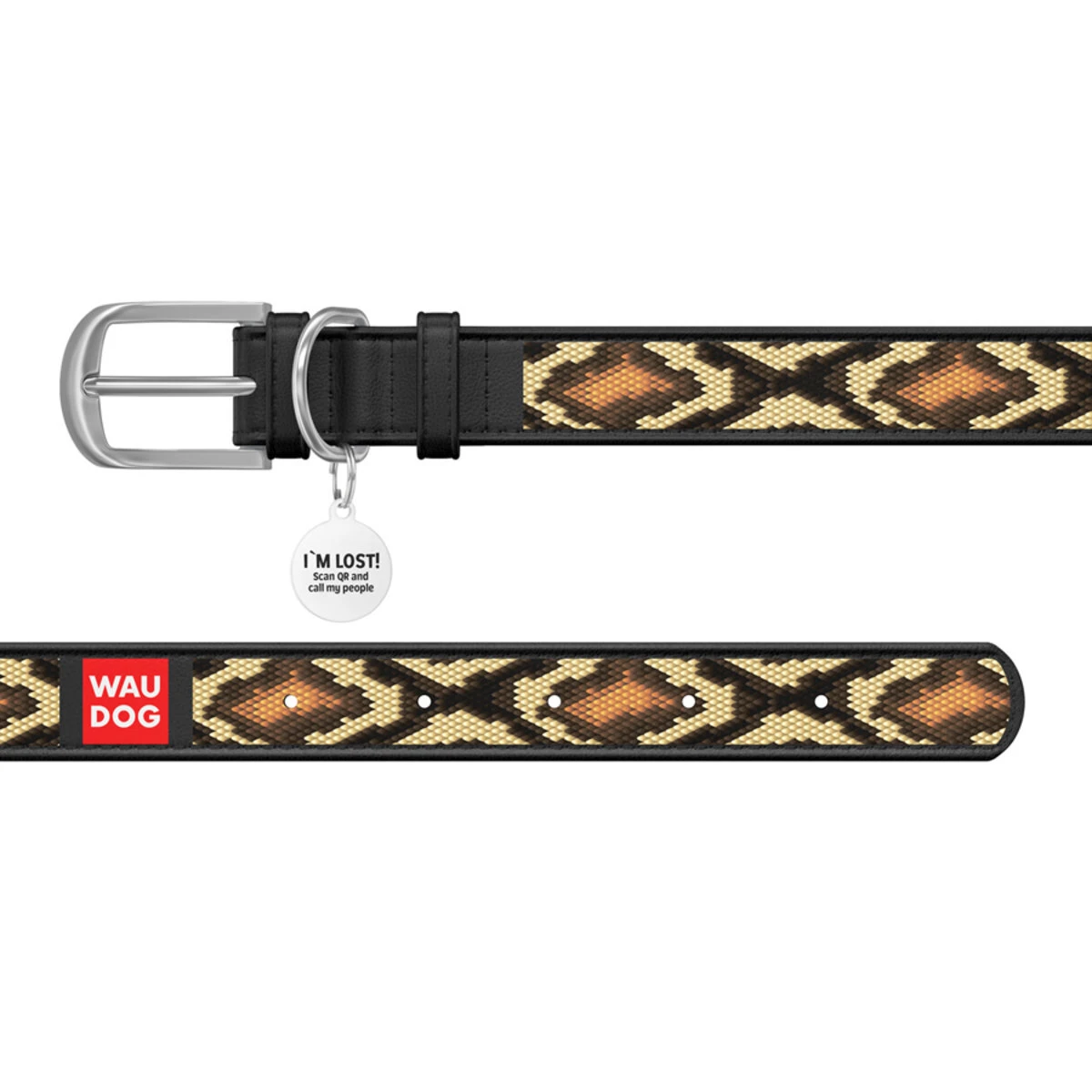 Нашийник WAUDOG Design з малюнком "Змія", преміум шкіра, металевий пряжка (ширина 15 мм, довжина 27-36 см), чорний