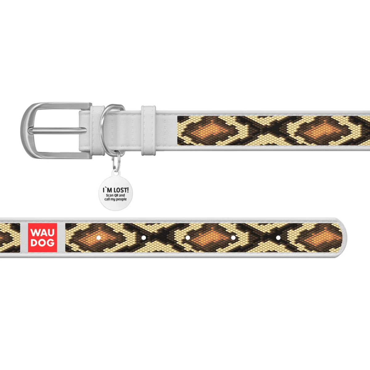 Нашийник WAUDOG Design з малюнком "Змія", преміум шкіра, металевий пряжка (ширина 25 мм, довжина 38-49 см), білий