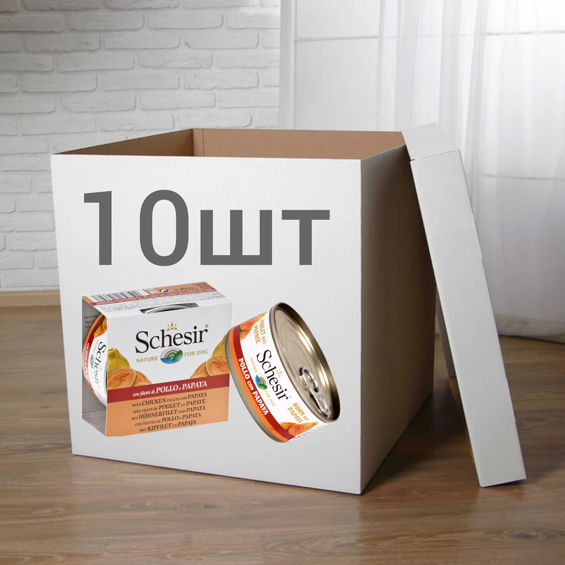 Полноценный влажный корм Schesir с натуральными курицей и папайей премиальные консервы для собак.