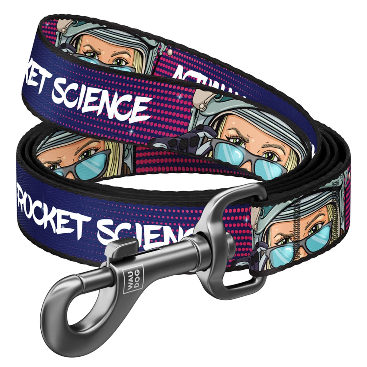 Повідок для собак нейлоновий WAUDOG Nylon малюнок "Космос. Ракетобудування", M, Ш 20 мм, Дл 122 см