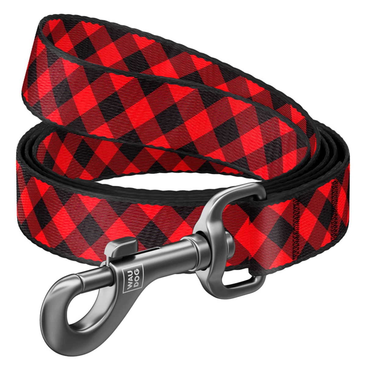Повідок для собак нейлоновий WAUDOG Nylon, малюнок "Шотландка червона", Ш 20 мм, Дл 122 см