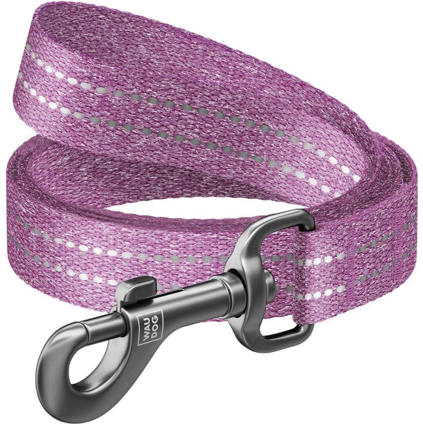 Повідець для собак з відновленої бавовни WAUDOG Re-cotton світловідбивний, Ш 20 мм, Дл 300 см, фіолетовий