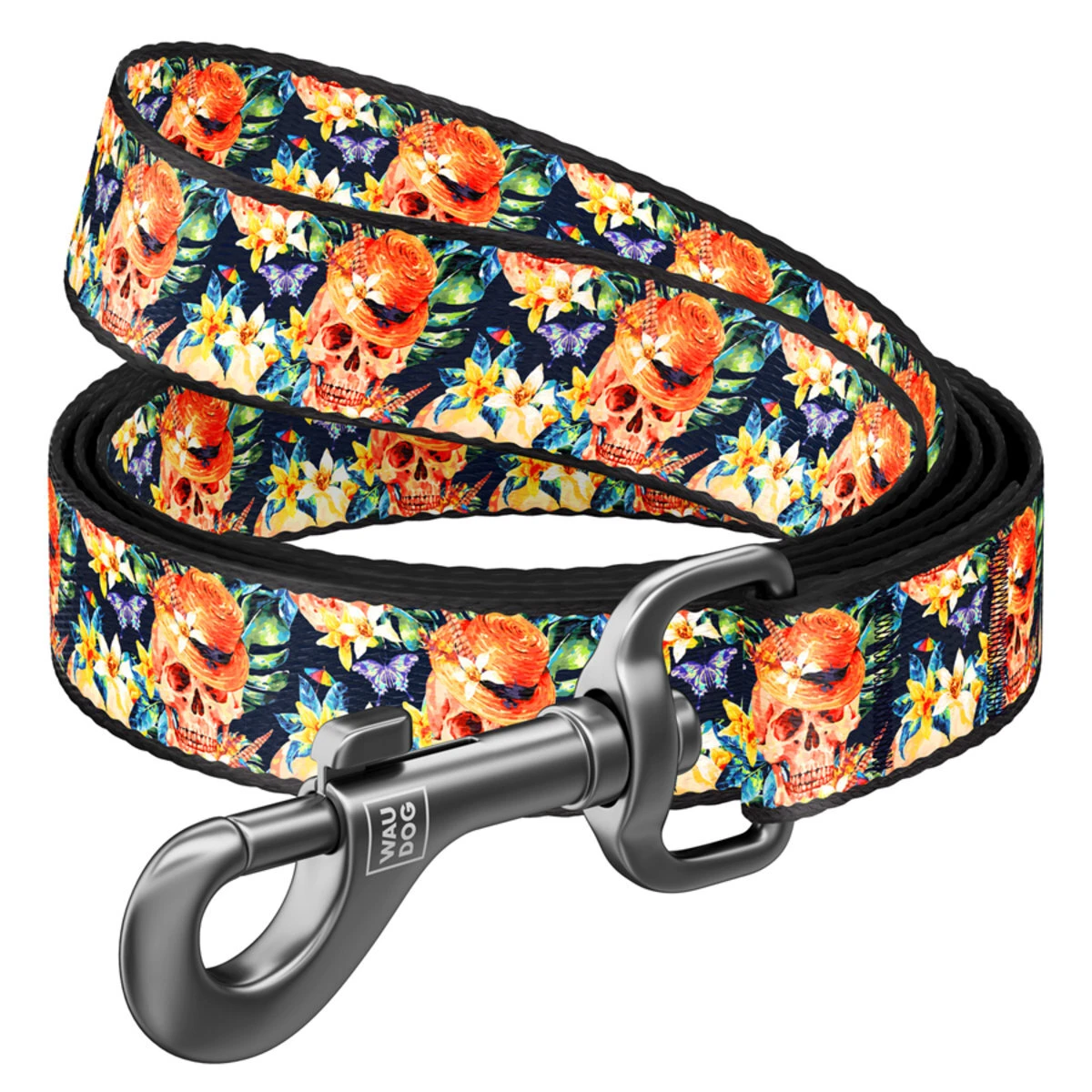 Поводок для собак нейлоновий WAUDOG Nylon, малюнок "Гламурні черепи", Ш 15 мм, Дл 122 см