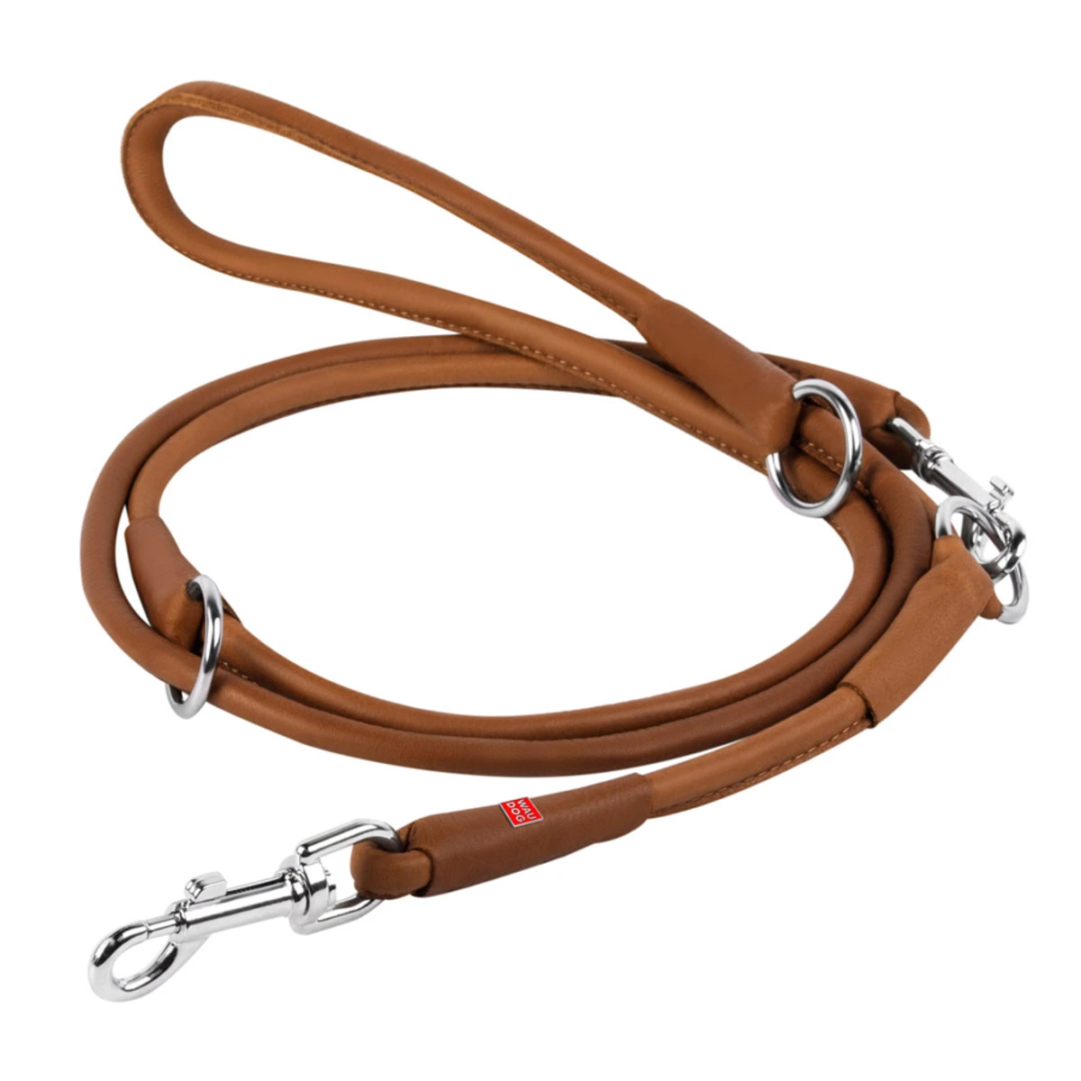 Поводок-перестежка для собак шкіряний WAUDOG Soft, круглий, Д 10 мм, Дл 183см, коричневий