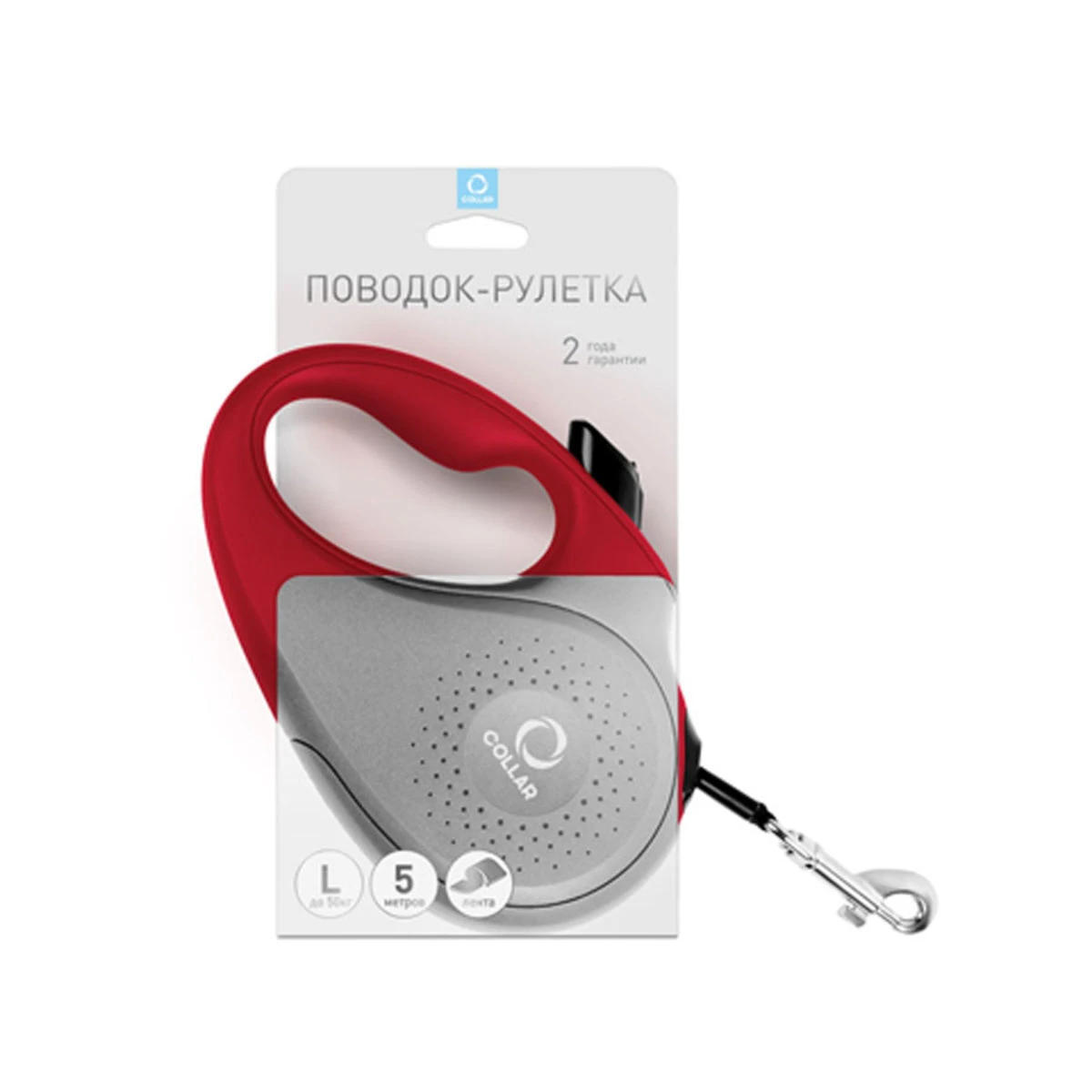 Поводок-рулетка CoLLaR для собак, розмір L, 50 кг, 5 м, стрічка, червоний