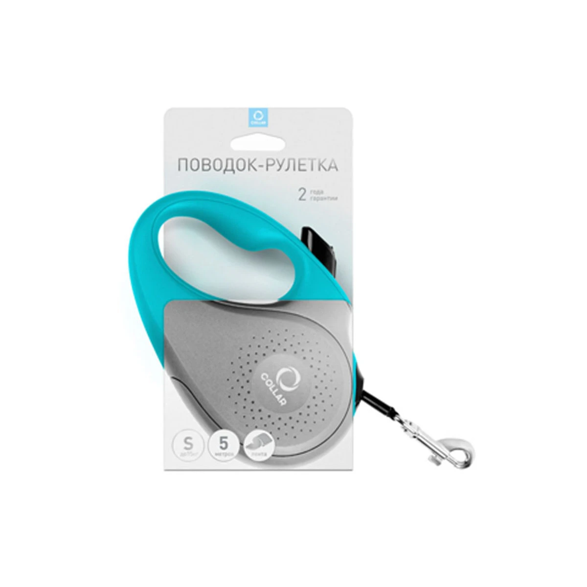 Поводок-рулетка CoLLaR для собак, розмір S, 15 кг, 5 м, стрічка, блакитний