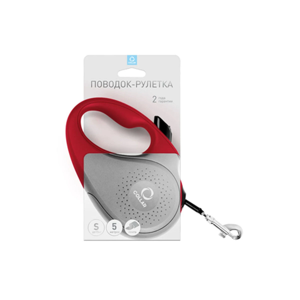 Поводок-рулетка CoLLaR для собак, розмір S, 15 кг, 5 м, стрічка, червоний
