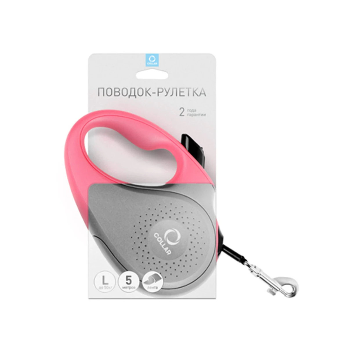 Поводок-рулетка CoLLaR для собак, розовий, розмір L, 50 кг, 5 м, стрічка