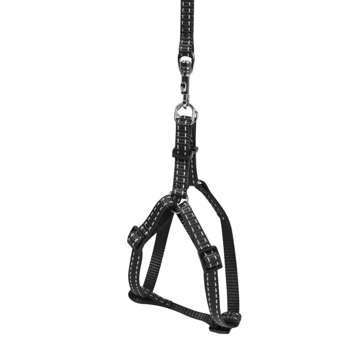Регульована нейлонова шлея "Dog Extremе" з повідцем (ширина 15мм, В:40-55см), чорна