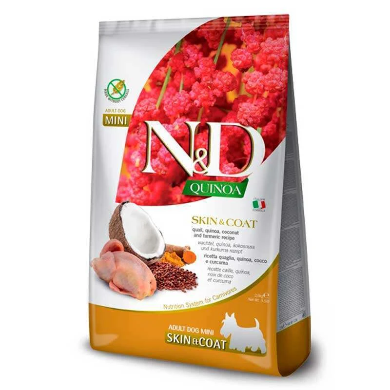 Farmina N&D Quinoa Small Breed Hypoallergenic Quail, Quinoa, Coconut & Turmeric – это сбалансированное решение премиум-класса, сочетающее гипоаллергенные белки и функциональные ингредиенты для ежедневного ухода за кожей, шерстью и пищеварительной системой ваших чувствительных малышей.