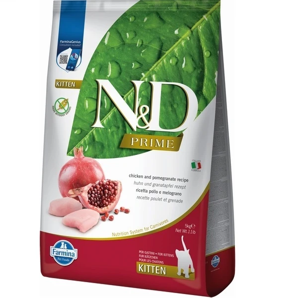Farmina N&D Grain Free Kitten Chicken & Pomegranate — это идеальный выбор для ежедневного премиального питания растущих котят всех пород.
