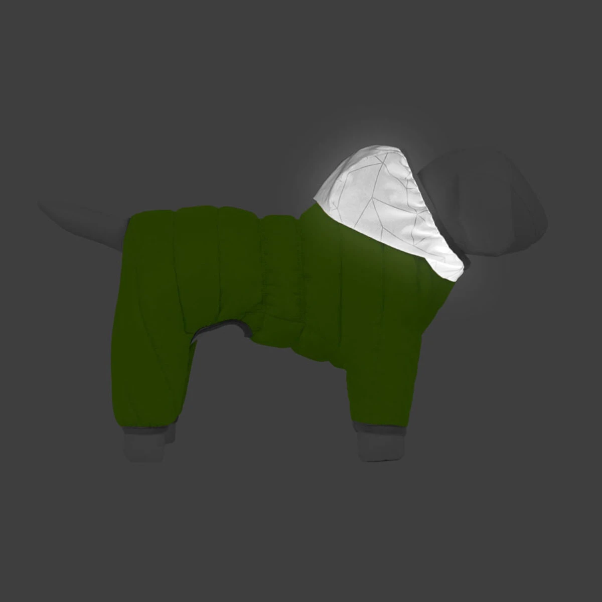 - капюшон из светоотражающего материала делает собаку