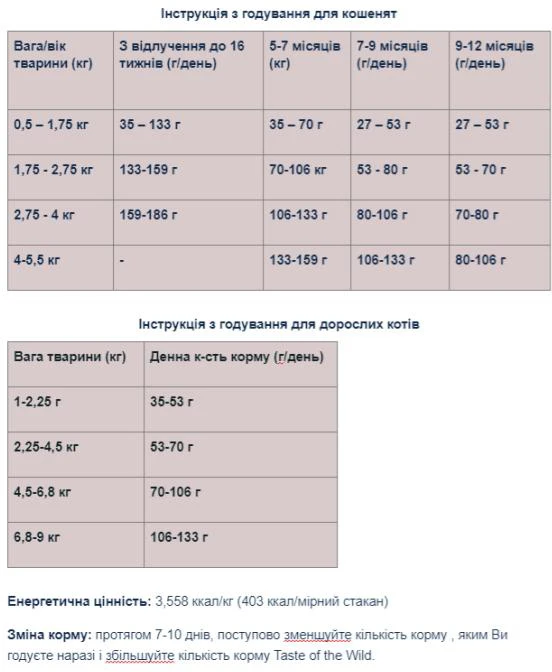 Овощи, бобовые и фрукты, включая батат, горошек, томаты, чернику и малину обеспечивают нутриентами, помогающими поддерживать хорошее самочувствие животных, в то время как гарантированные уровни цинка, селена и витамина Е поддерживают иммунную систему. Все рационы Taste Of The Wild созданы в соответствии с уровнями питательности, установленными AAFCO (Американская государственная ассоциация контроля кормов) и разработаны с учетом потребностей собак и кошек на разных стадиях жизни.