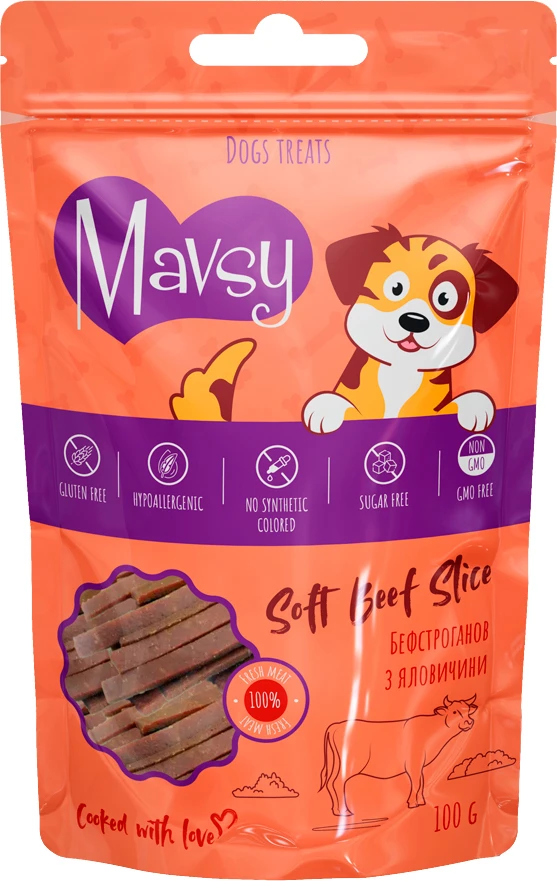 Mavsy Soft Beef Slice - прекрасное лакомство, специально созданное для собак. Наша приверженность качеству гарантирует, что каждый кусочек будет не только вкусным, но и полезным для здоровья вашего пушистого друга.