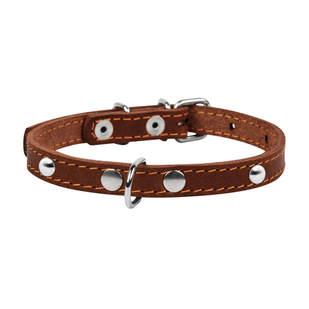 Ошейник "CoLLaR" одинарный с украшениями (ширина 12мм, длина 24-32см), коричневый
