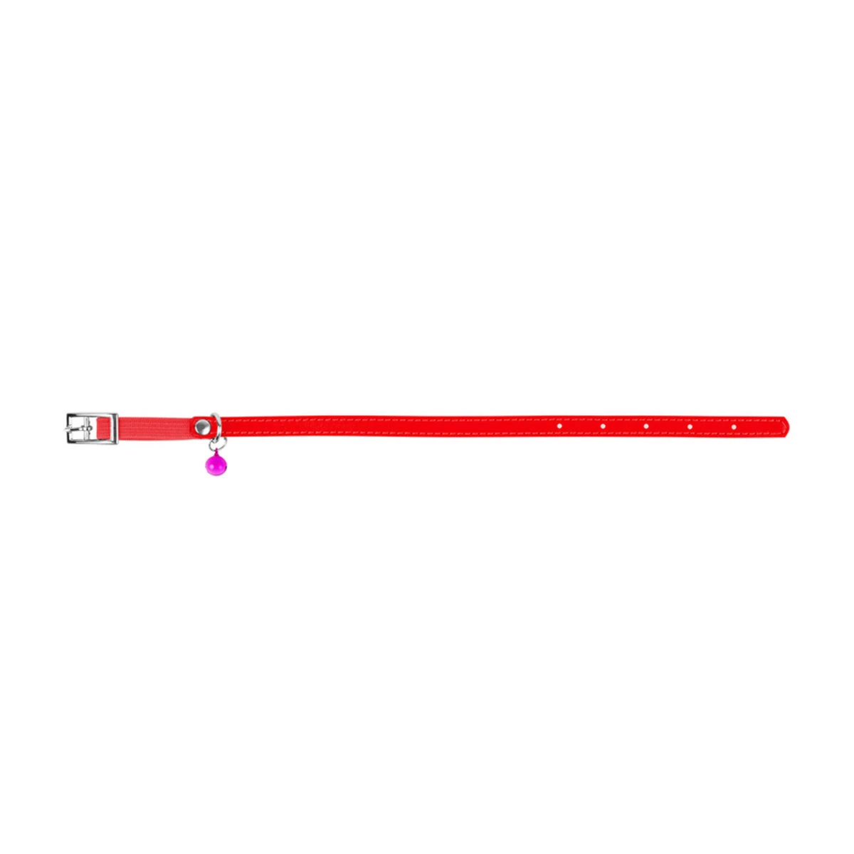 Ошейник для котов кожаный WAUDOG Glamour с QR паспортом, без украшений, Ш 9 мм, Дл 22-30 см, красный