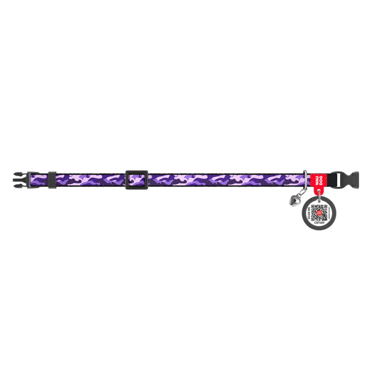 Ошейник для котов нейлоновый WAUDOG Nylon c QR паспортом, рисунок "Фиолетовый камо", пластиковый фастекс, Ш 10 мм, Дл 20-30 см
