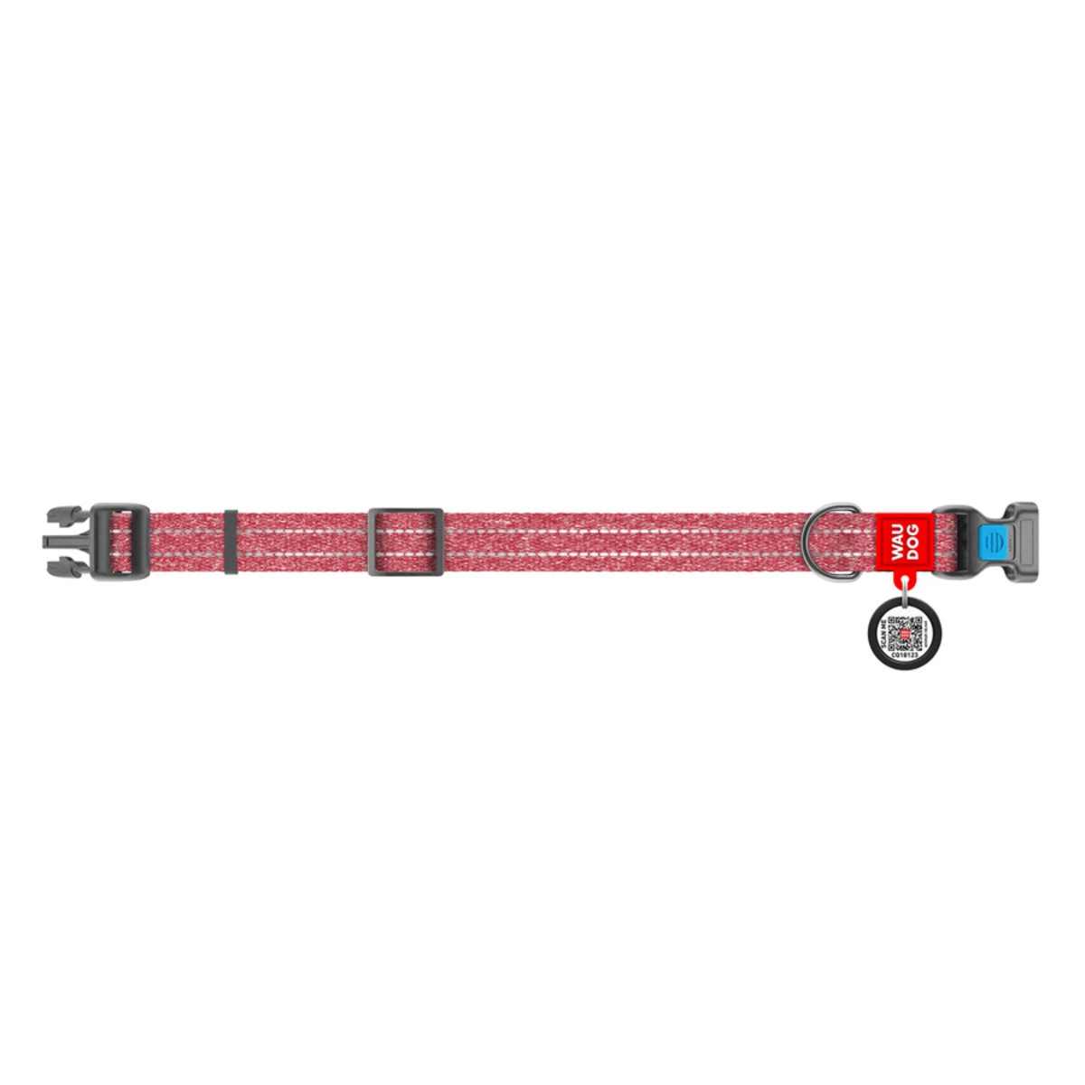 Ошейник для собак из восстановленного хлопка WAUDOG Re-cotton с QR паспортом, светоотражающий, пластиковый фастекс, Ш 15 мм, Дл 23-35 см, красный