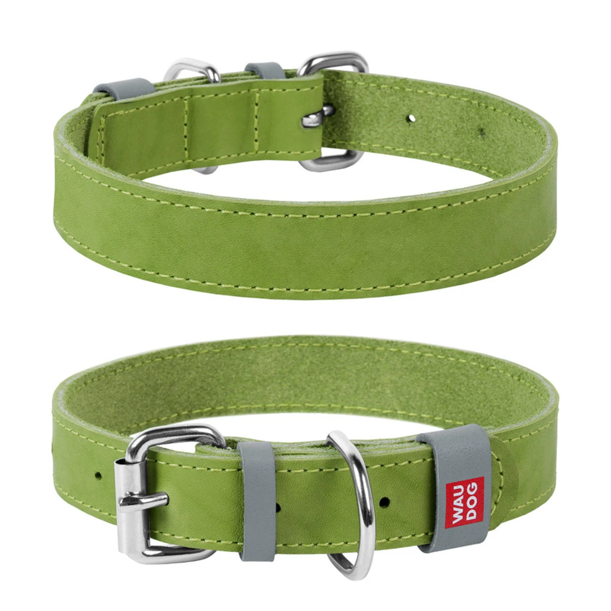 Ошейник для собак кожаный WAUDOG Classic, Ш 20 мм, Дл 30-39 см, салатовый
