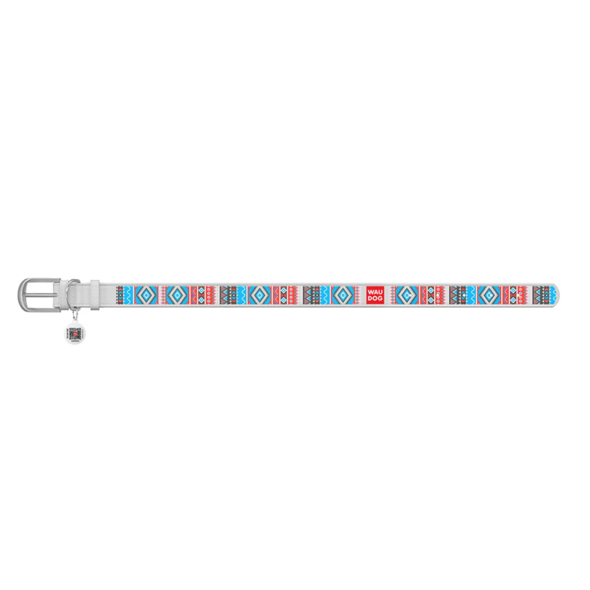 Ошейник для собак кожаный WAUDOG Design с QR паспортом, рисунок "Этно", Ш 20 мм, Дл 30-39 см, белый