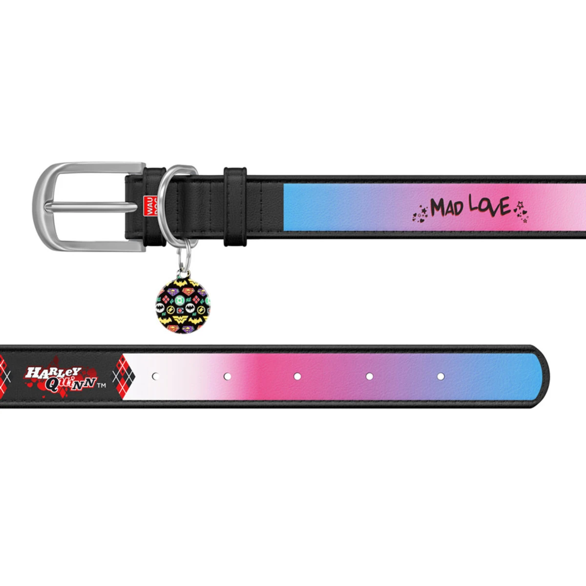 Ошейник для собак кожаный WAUDOG Design с QR паспортом, рисунок "Харли Квинн", Ш 25 мм, Дл 37-48 см, черный