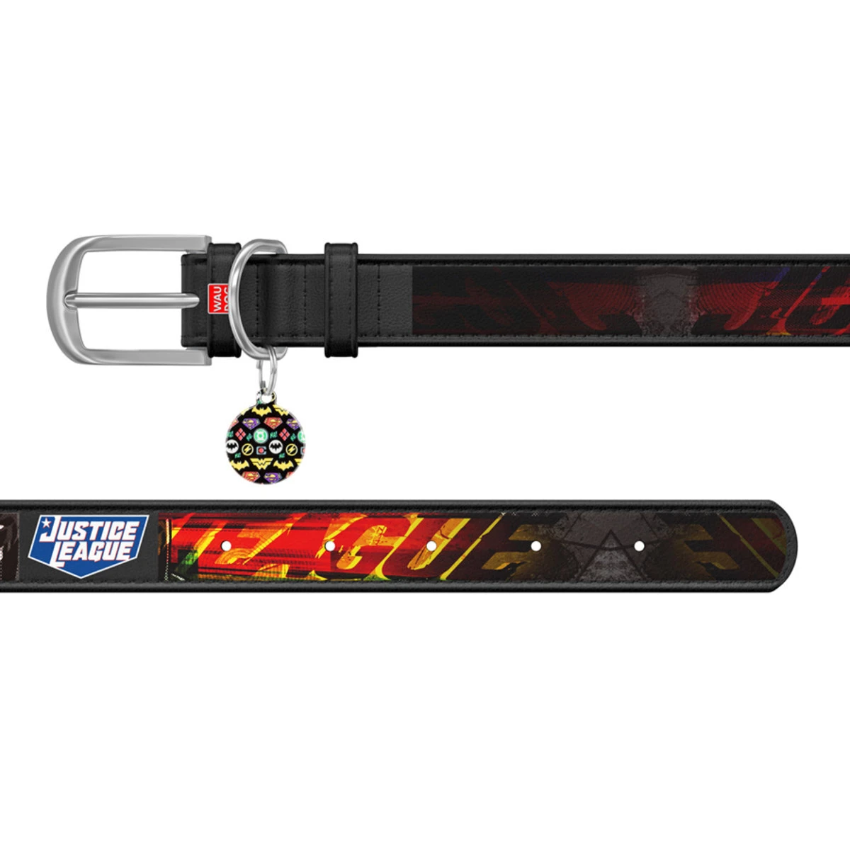 Ошейник для собак кожаный WAUDOG Design с QR паспортом, рисунок "Лига Справедливости", Ш 12 мм, Дл 20-28 см, черный
