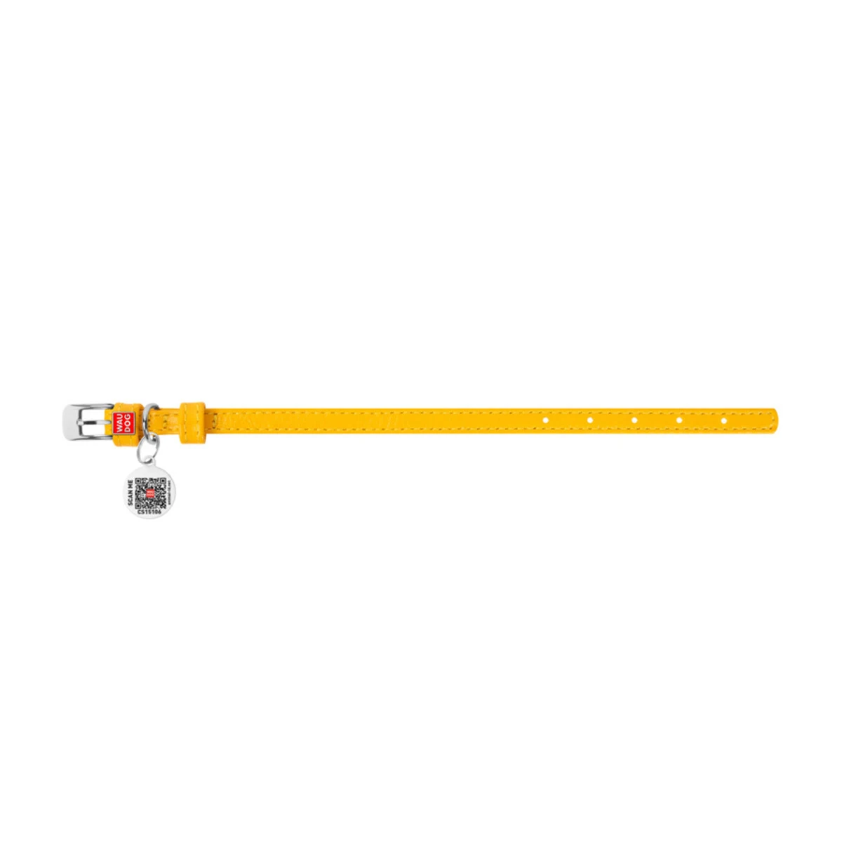 Ошейник для собак кожаный WAUDOG Glamour с QR паспортом, без украшений, Ш 12 мм, Дл 21-29 см, желтый