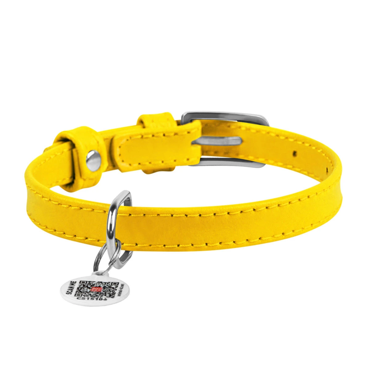 Ошейник для собак кожаный WAUDOG Glamour с QR паспортом, без украшений, Ш 15 мм, Дл 27-36 см, желтый