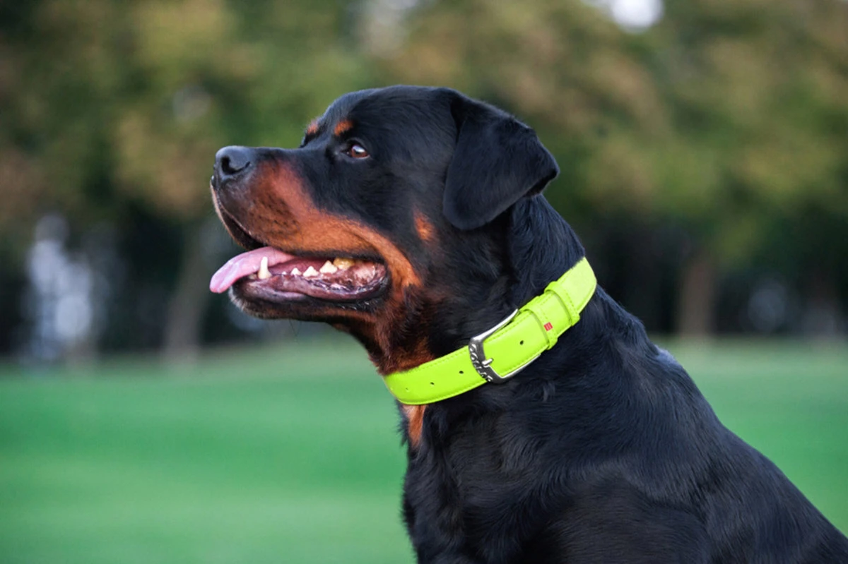 Ошейник для собак кожаный WAUDOG Glamour с QR паспортом, без украшений, Ш 25 мм, Дл 38-49 см, салатовый