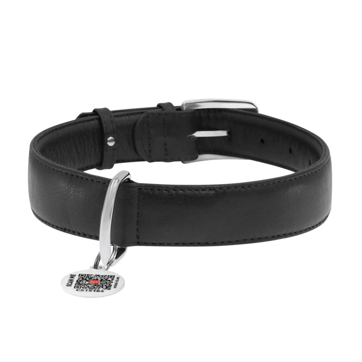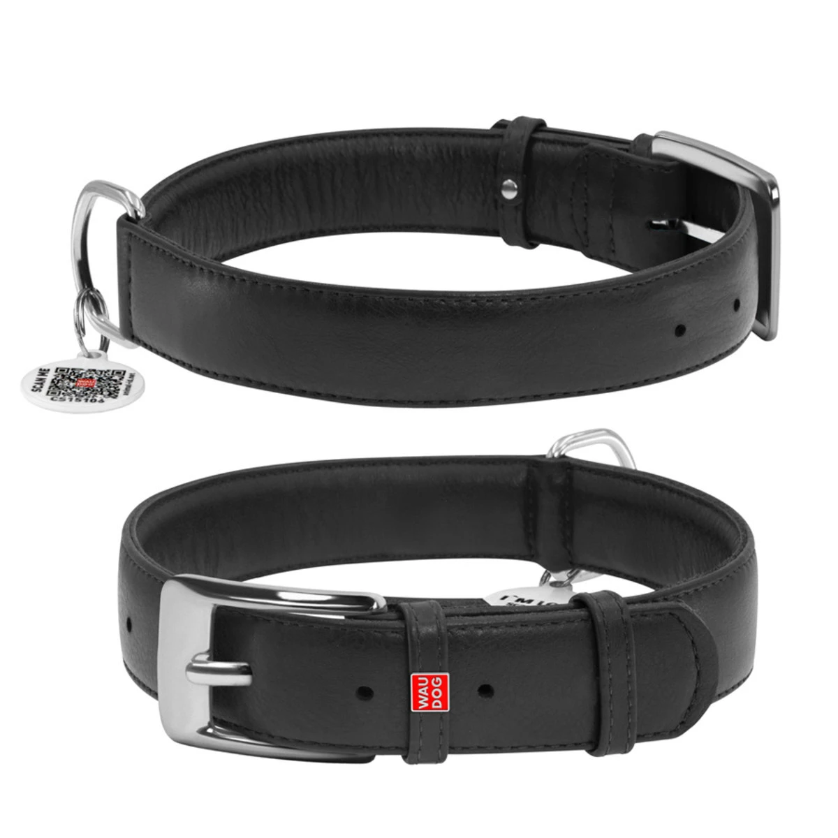 Ошейник для собак кожаный WAUDOG Glamour с QR паспортом, без украшений, Ш 35 мм, Дл 46-60 см, черный