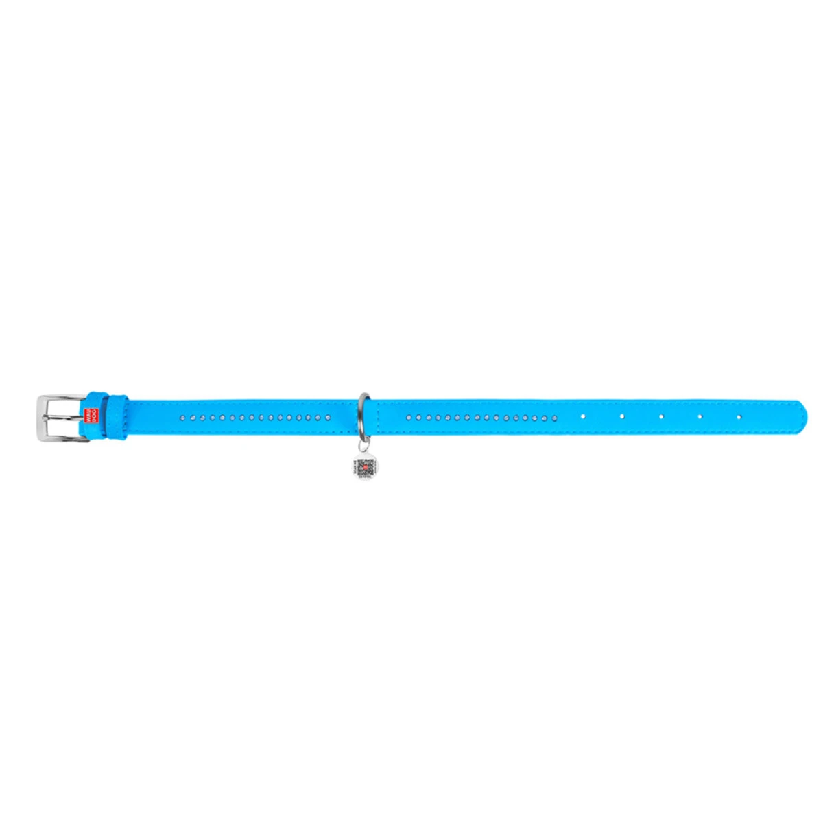 Ошейник для собак кожаный WAUDOG Glamour с QR паспортом, двойной со стразами, Ш 20 мм, Дл 30-39 см, голубой