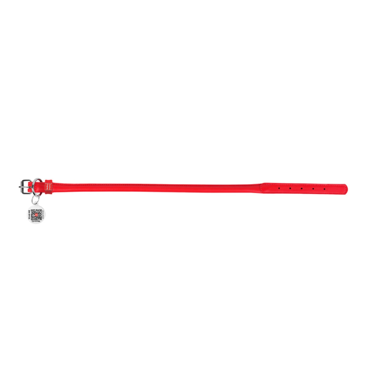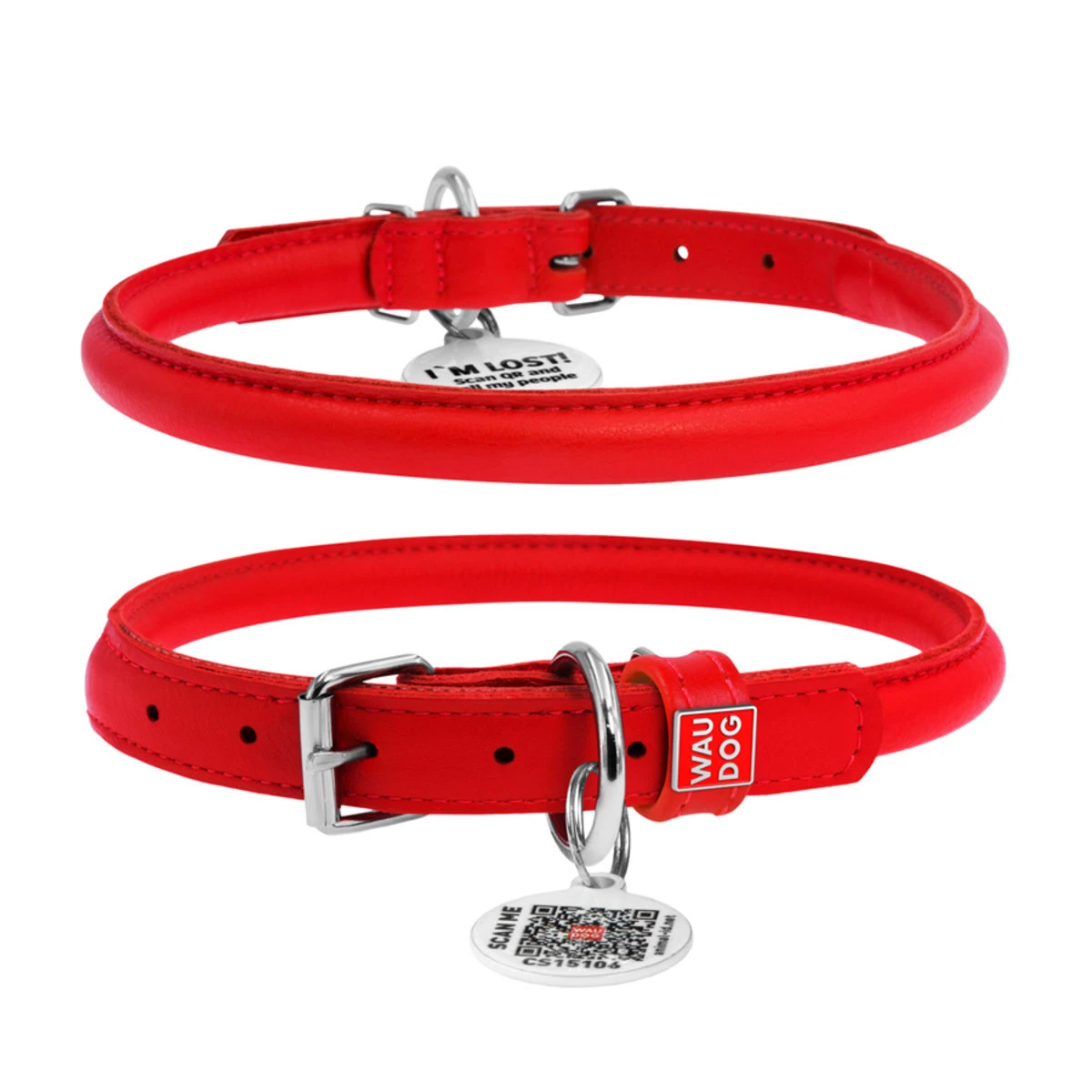 Ошейник для собак кожаный WAUDOG Glamour с QR паспортом, круглый, Д 10 мм, Дл 33-41 см, красный