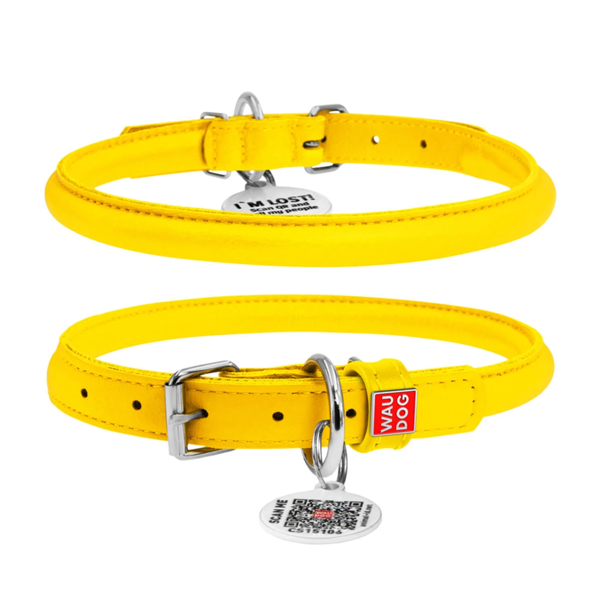 Ошейник для собак кожаный WAUDOG Glamour с QR паспортом, круглый, Д 10 мм, Дл 33-41 см, желтый