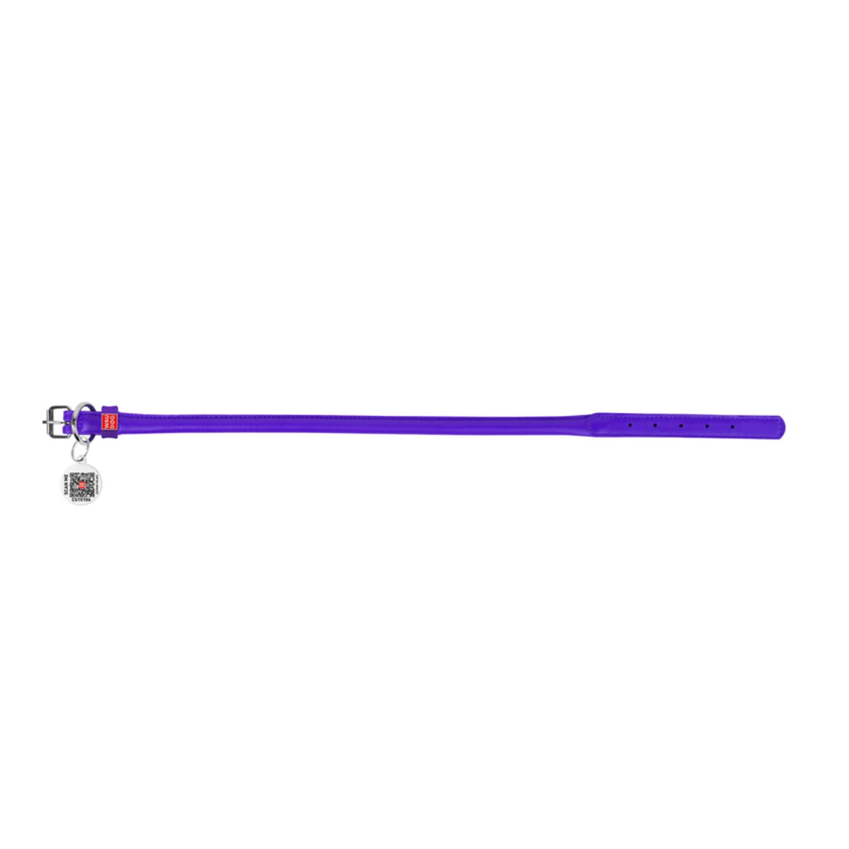 Ошейник для собак кожаный WAUDOG Glamour с QR паспортом, круглый, Д 13 мм, Дл 45-53 см, фиолетовый
