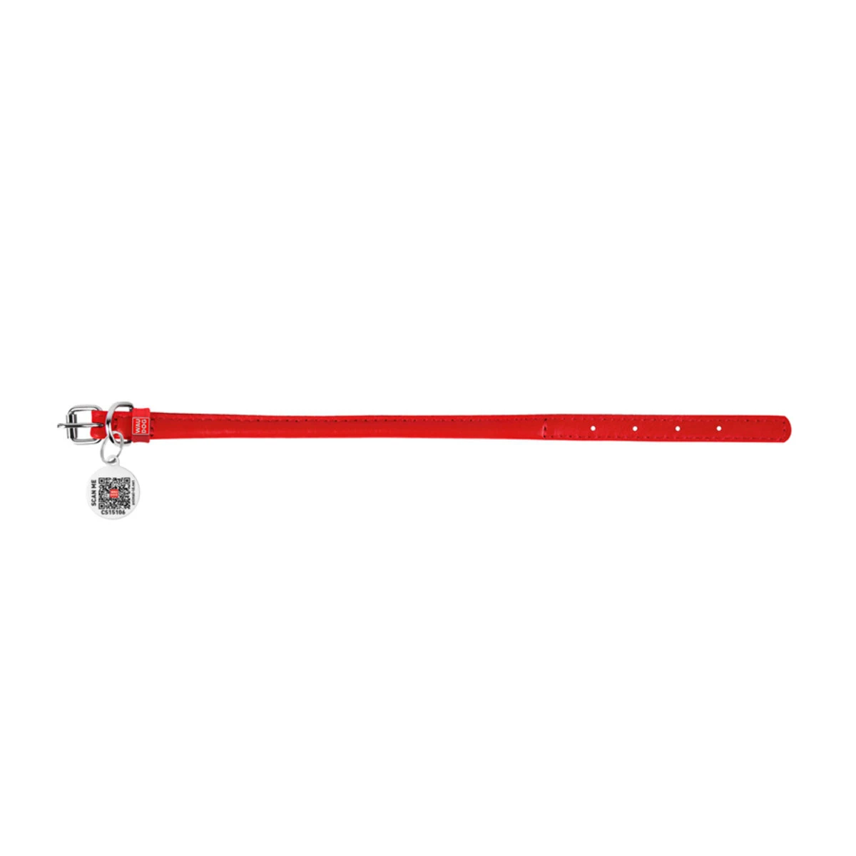 Ошейник для собак кожаный WAUDOG Glamour с QR паспортом, круглый, Д 8 мм, Дл 25-33 см, красный