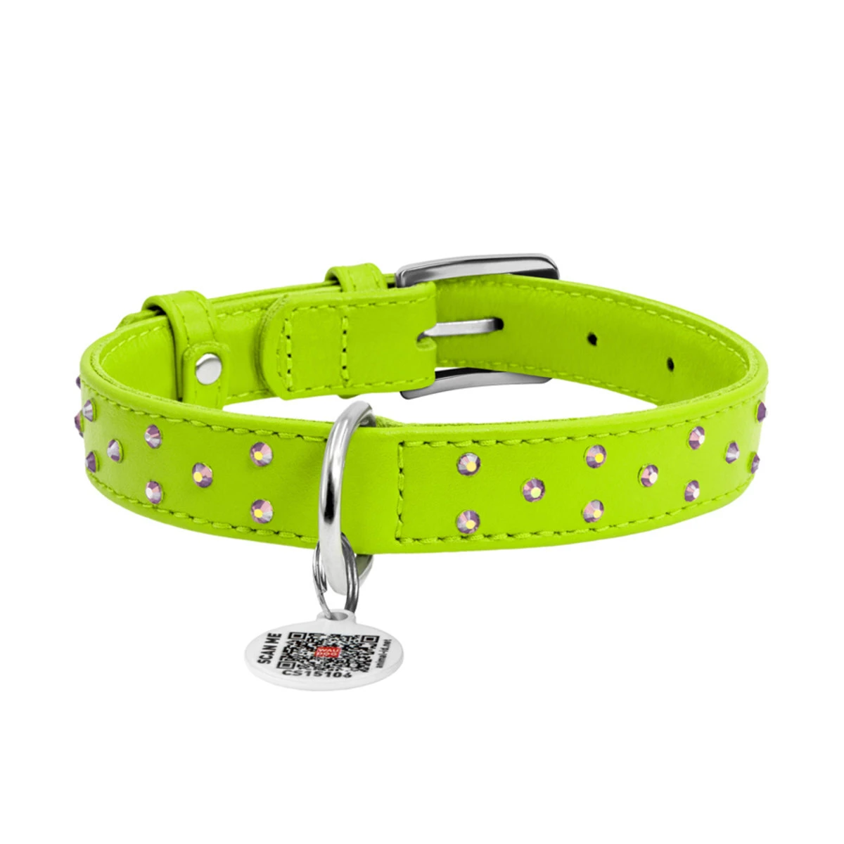 Ошейник для собак кожаный WAUDOG Glamour с QR паспортом, с клеевыми стразами, Ш 20 мм, Дл 30-39 см, салатовый