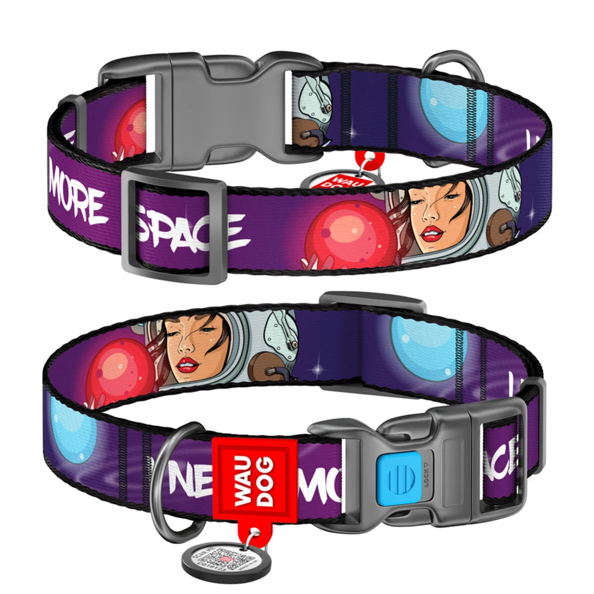 Ошейник для собак нейлоновый WAUDOG Nylon c QR-паспортом, рисунок "Больше космоса", пластиковый фастекс, L, Ш 25 мм, Дл 31-49 см