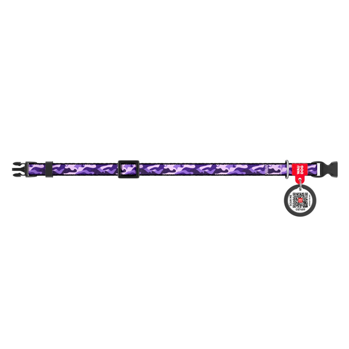 Ошейник для собак нейлоновый WAUDOG Nylon c QR паспортом, рисунок "Фиолетовый камо", пластиковый фастекс, Ш 10 мм, Дл 20-30 см