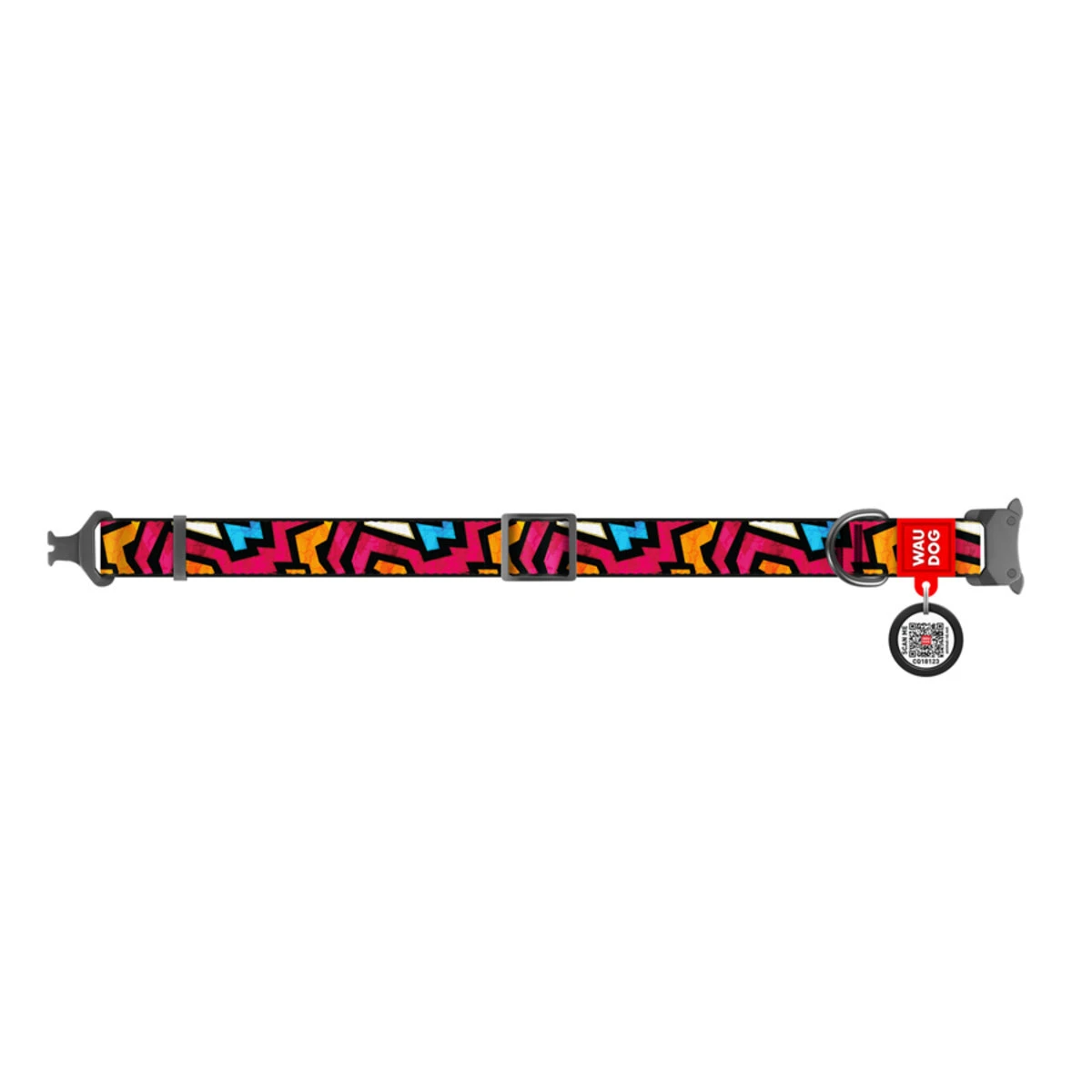 Ошейник для собак нейлоновый WAUDOG Nylon c QR паспортом, рисунок "Граффити", металлическая пряжка-фастекс, Ш 15 мм, Дл 23-35 см