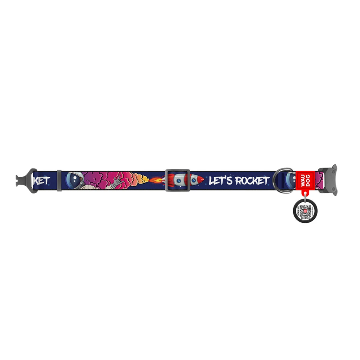 Ошейник для собак нейлоновый WAUDOG Nylon c QR-паспортом, рисунок "Космос. Ракета", металлическая пряжка-фастекс, S, Ш 15 мм, Дл 23-35 см